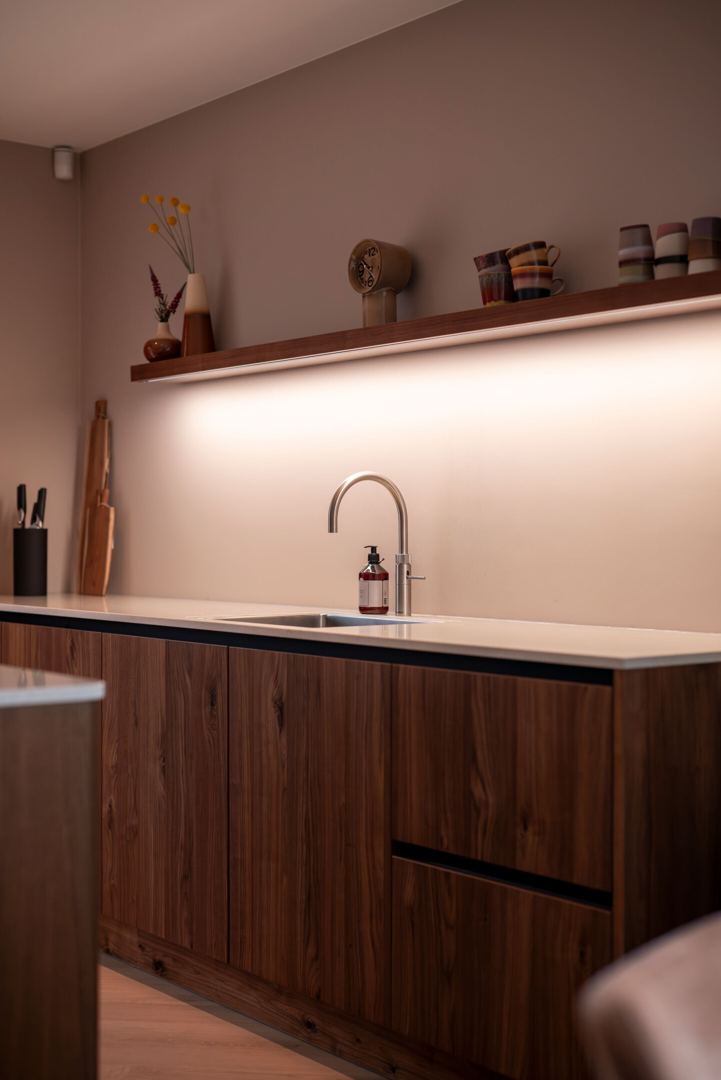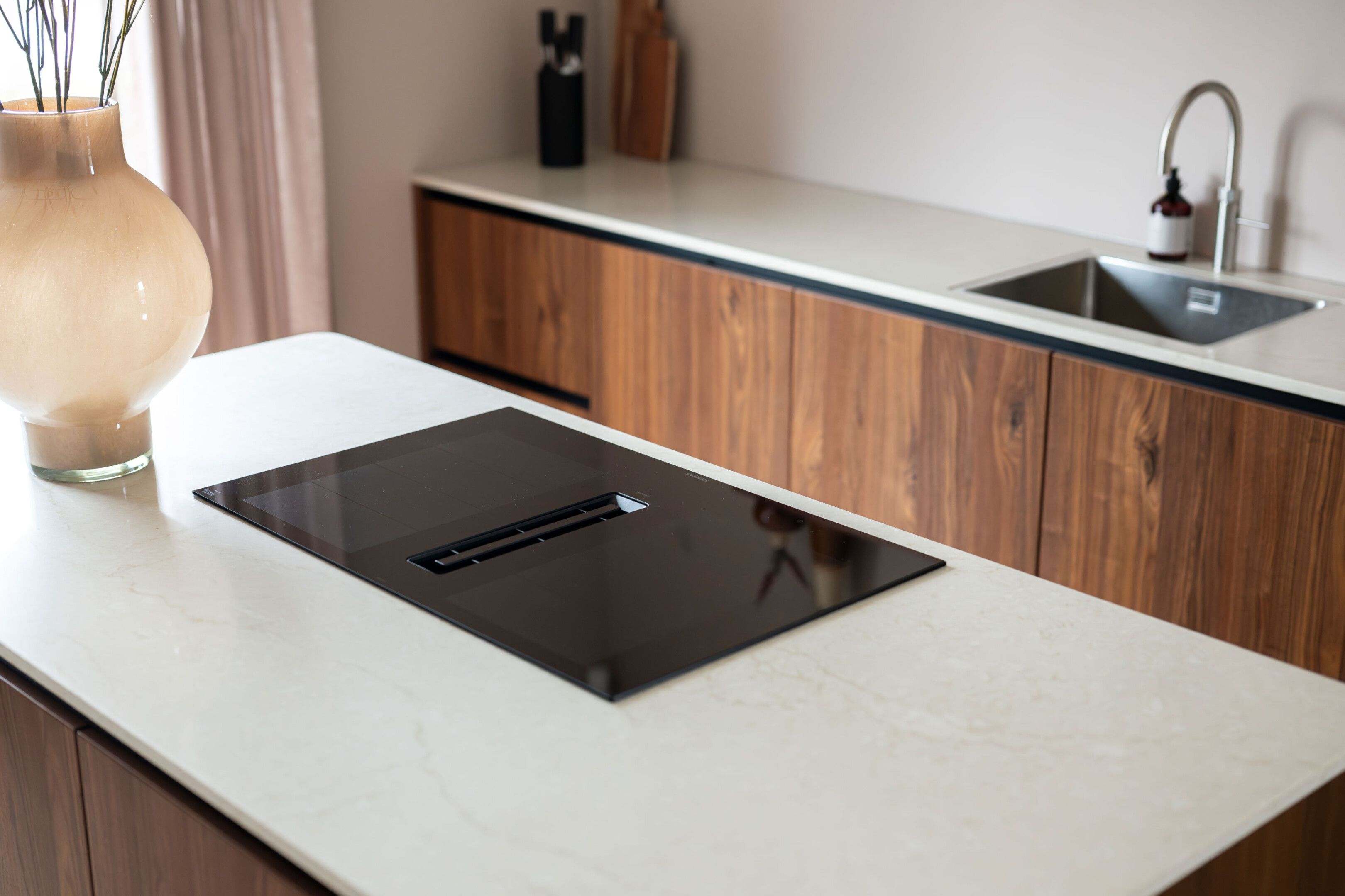 De familie Van der Vlist was al bekend met de stijl en kwaliteit van Soet voor hun interieur. Toen de wens voor een nieuwe keuken ontstond, was de keuze voor Soet dan ook een logische vervolgstap. Gesterkt door enthousiaste verhalen uit hun omgeving en het eerdere vakmanschap dat ze van ons kenden, gingen ze het gesprek aan. Onze stijladviseurs wisten de familie direct te inspireren met een ontwerp waarin vorm en materiaal perfect in balans zijn. Dit enthousiasme was de basis voor een prachtig traject waarin elke keuze bijdroeg aan een leefkeuken die écht klopt.