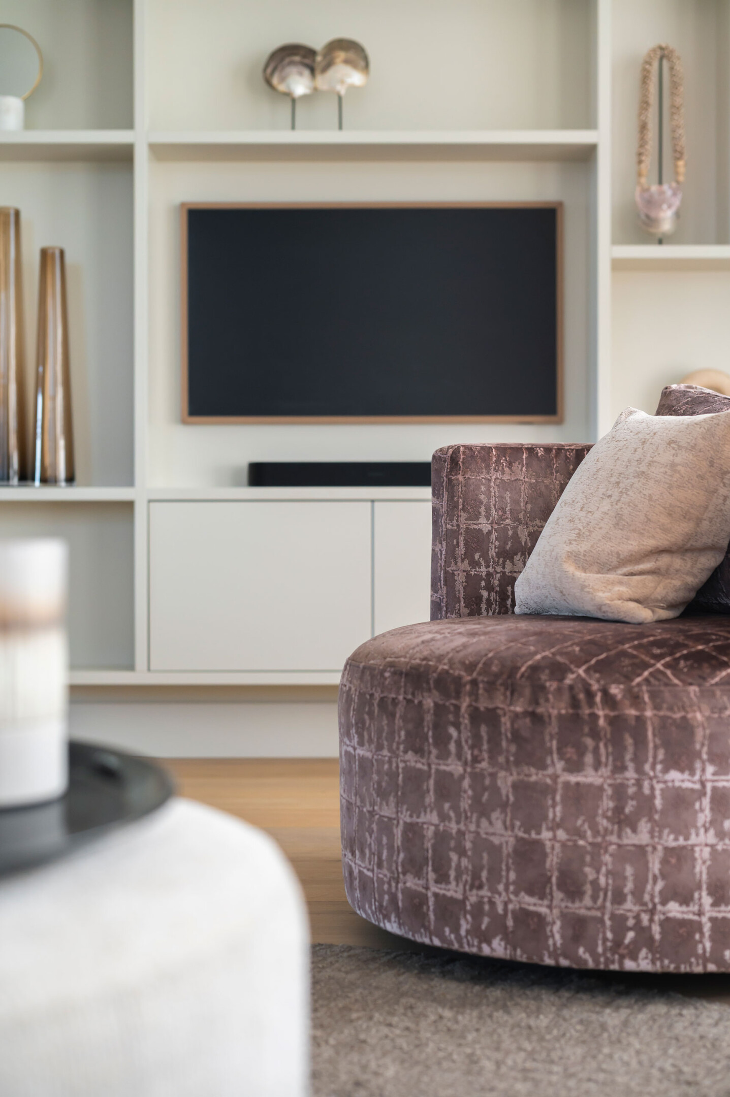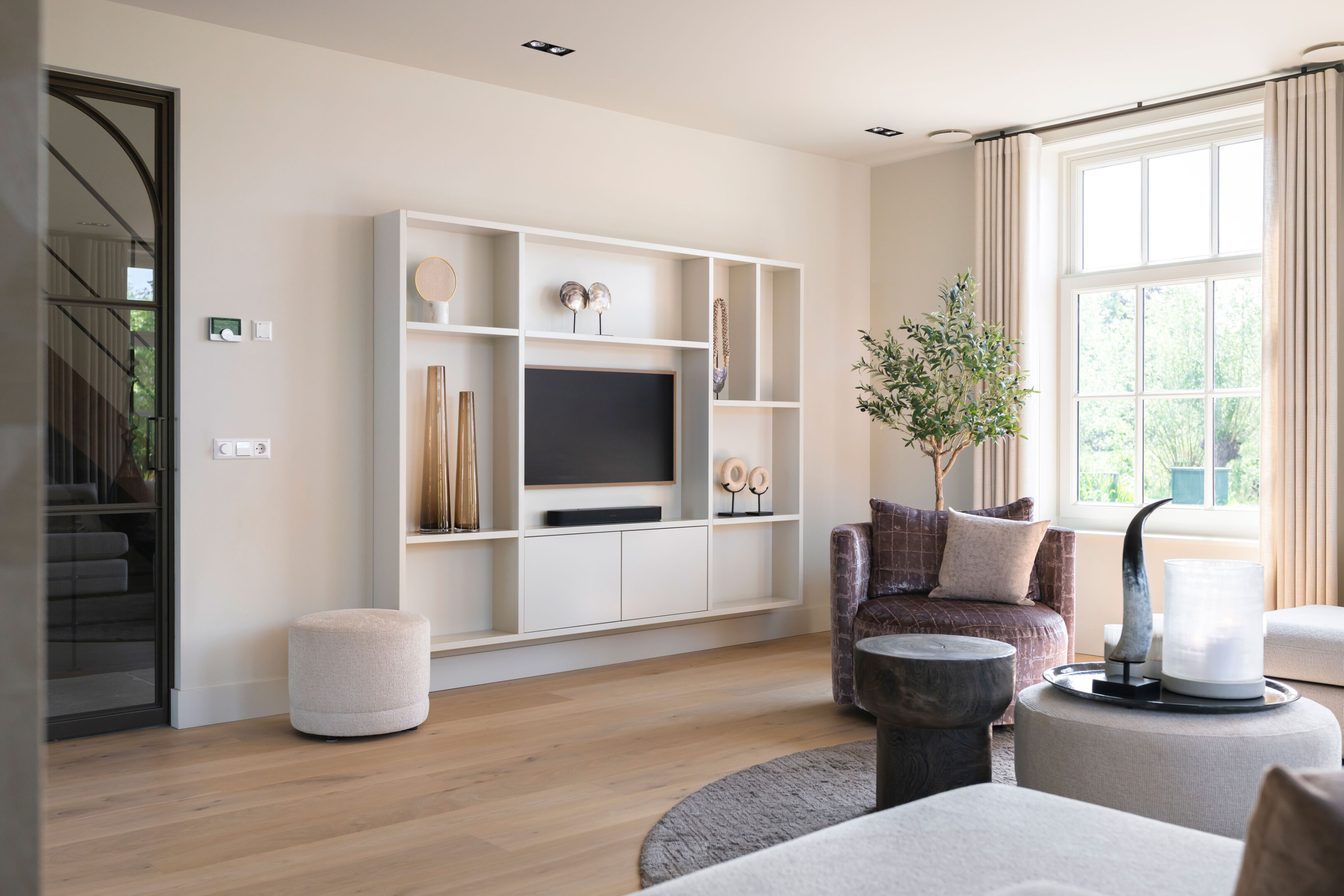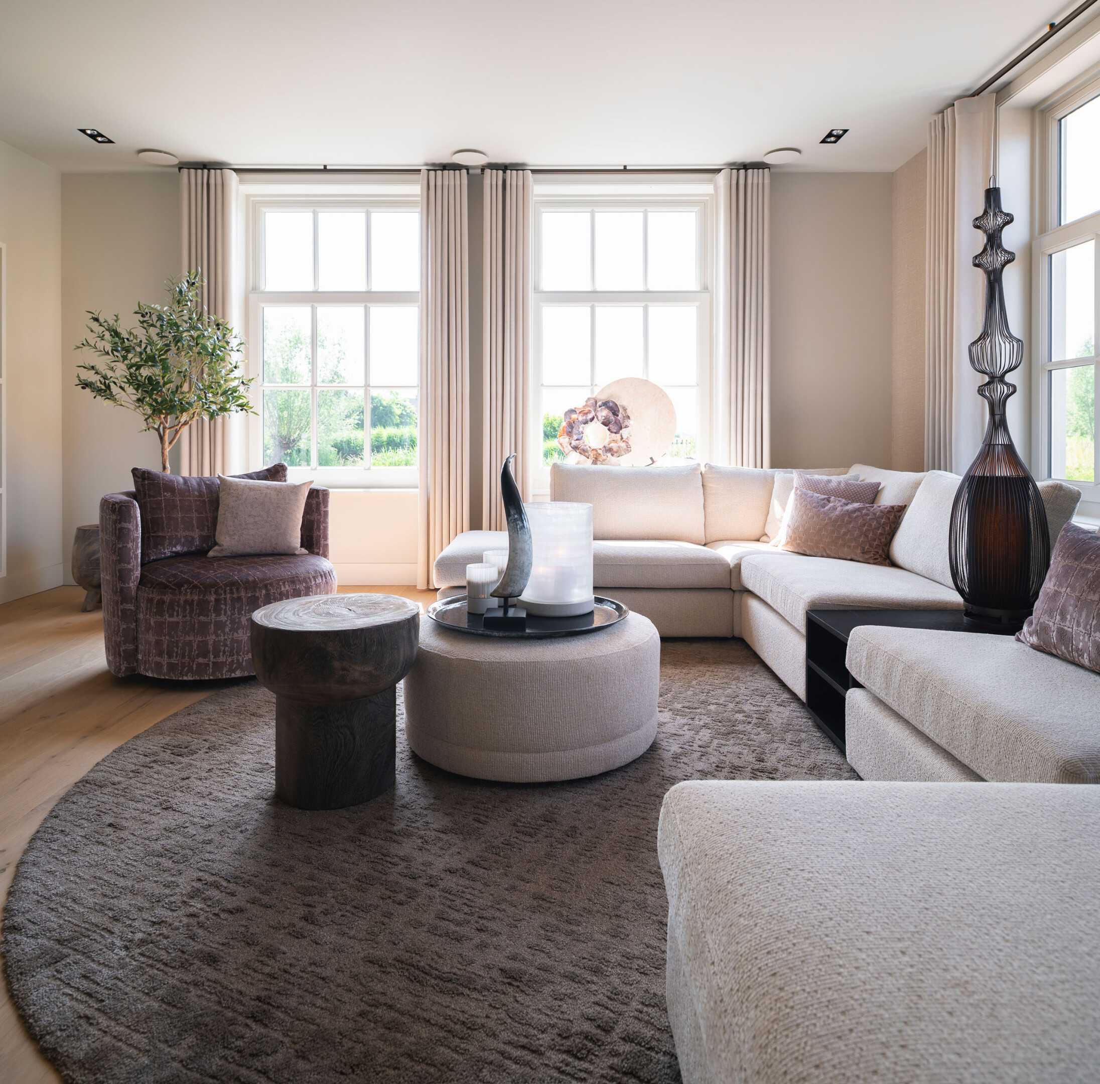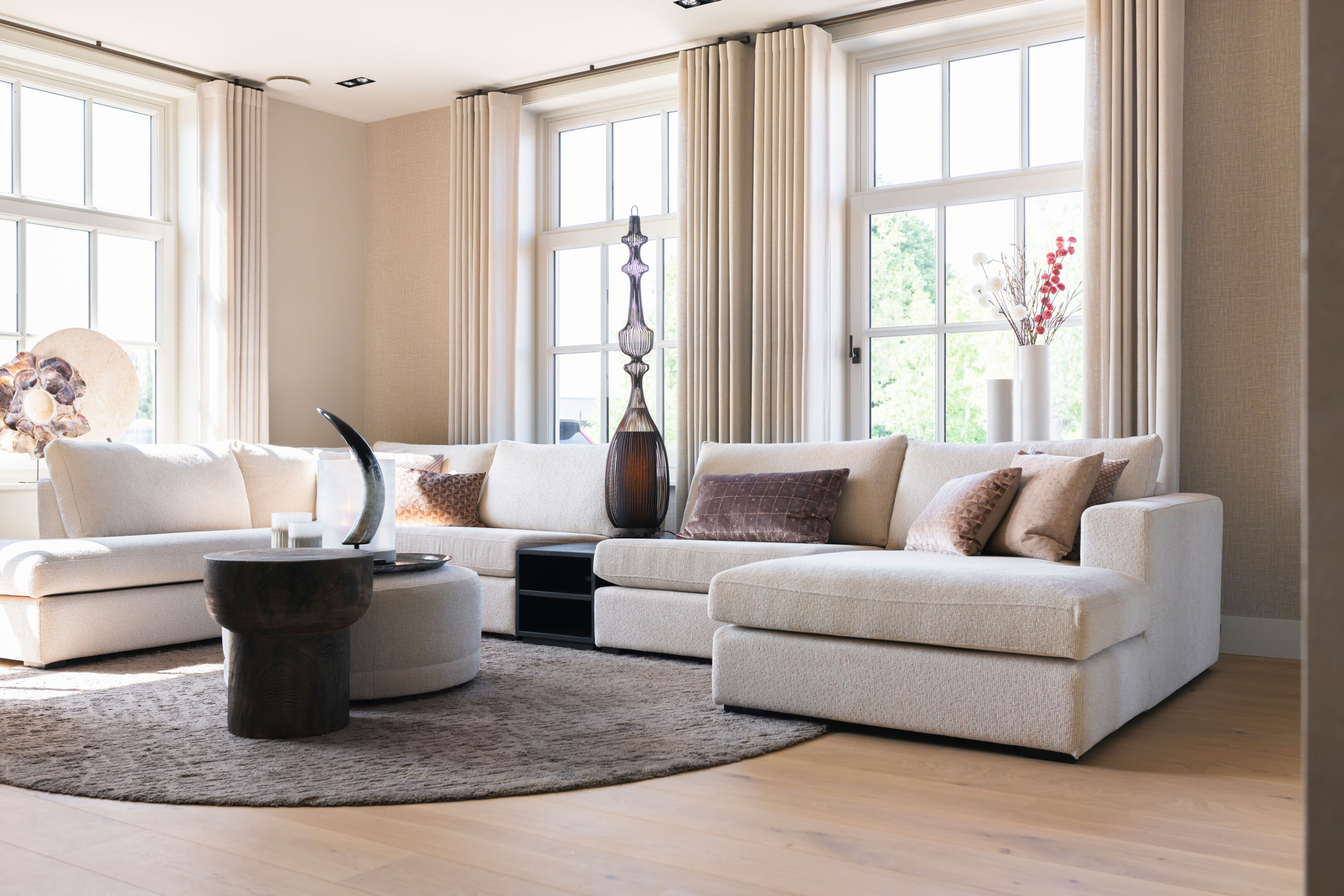 De landelijke bank die ze als eerste zagen, vormt het vertrekpunt. Vanuit daar maken Berthun en Julianne een plan voor de hele woning: vloeren, gordijnen, behang én een lichtplan. “Het 3D-ontwerp hielp ons enorm. Zo konden we ons huis al beleven terwijl de bouw nog volop bezig was. Dat gaf veel vertrouwen.”