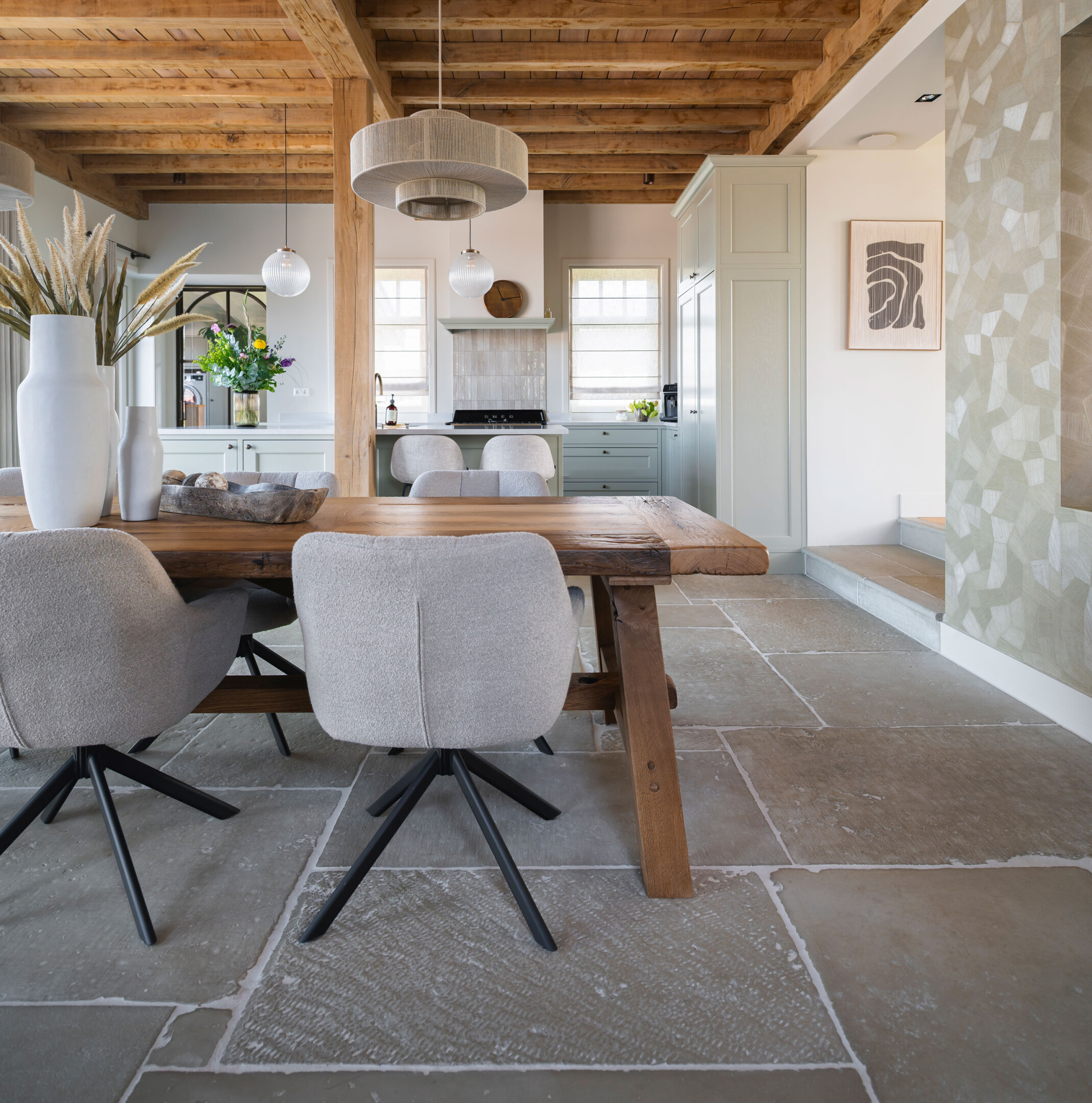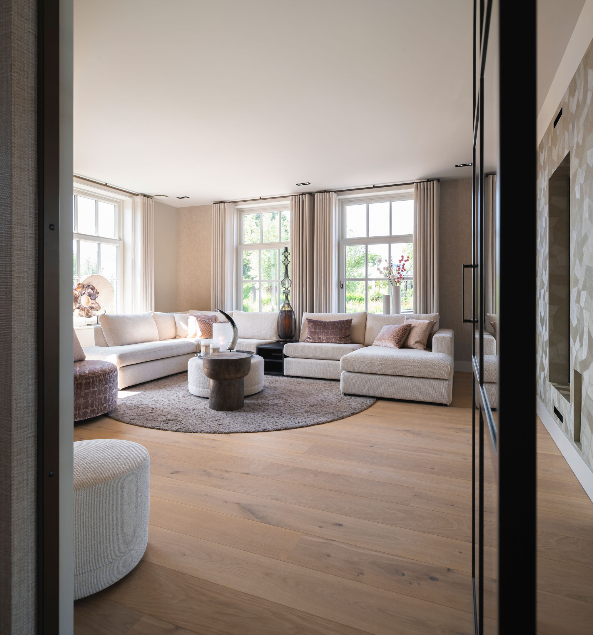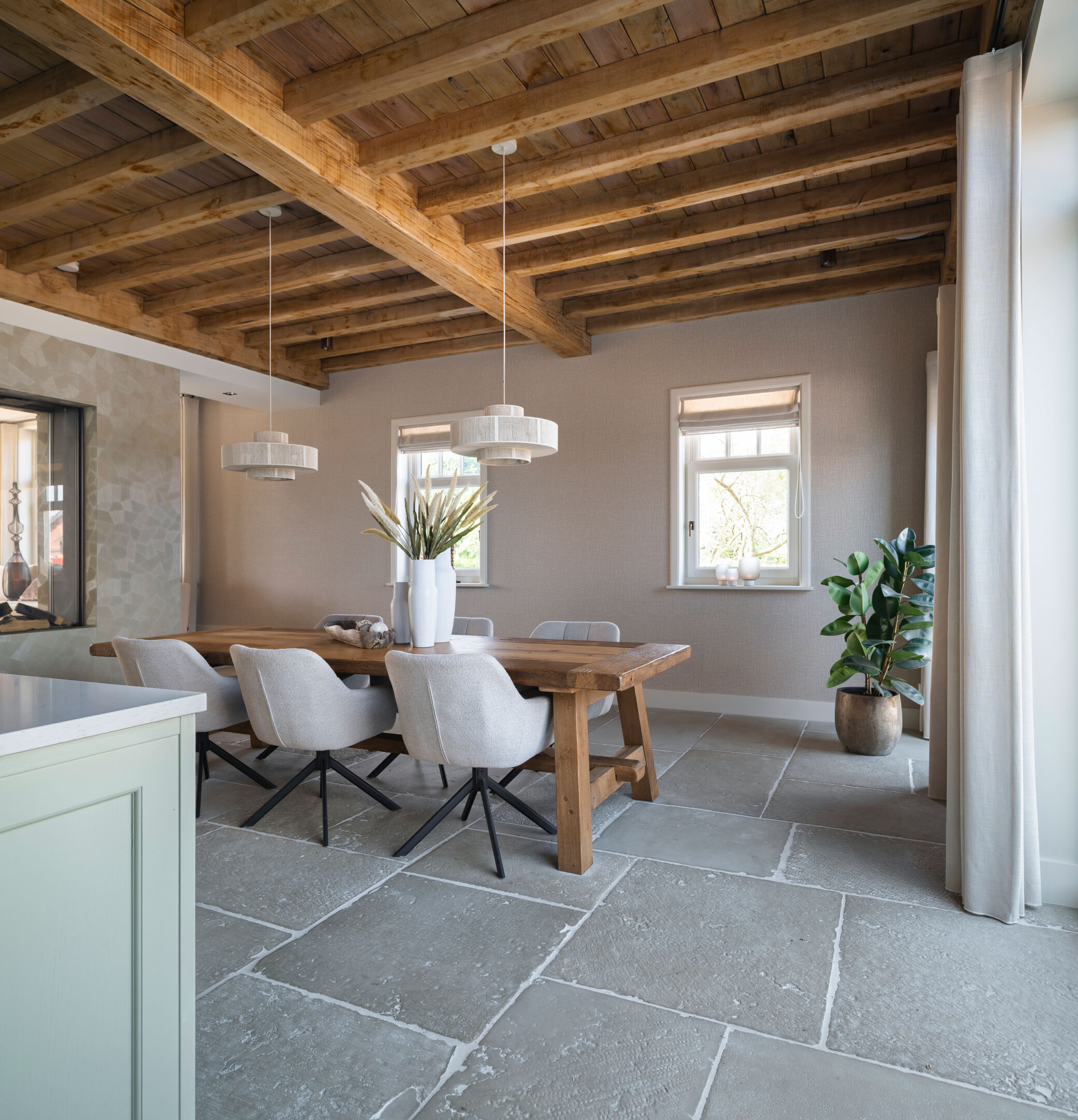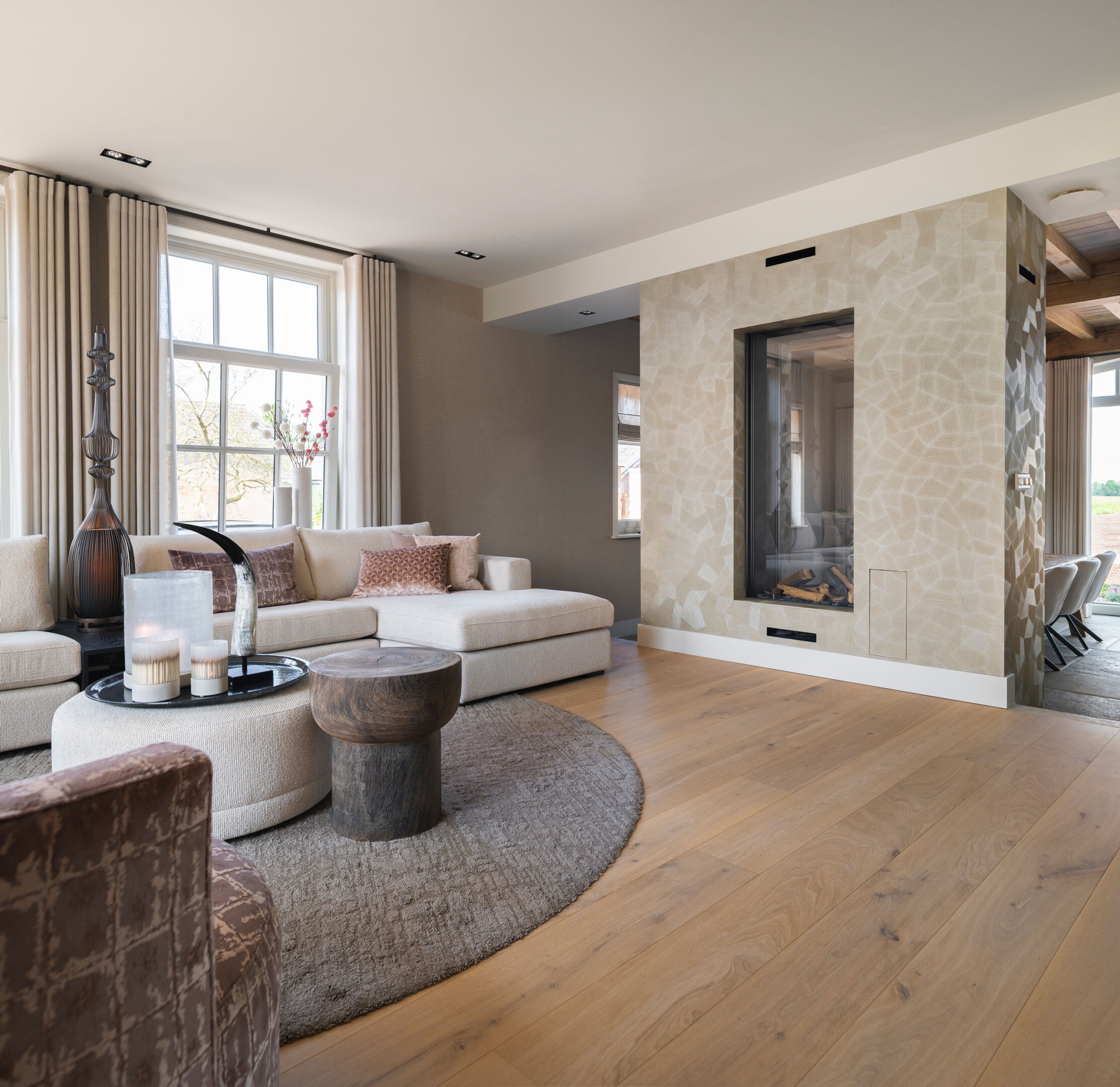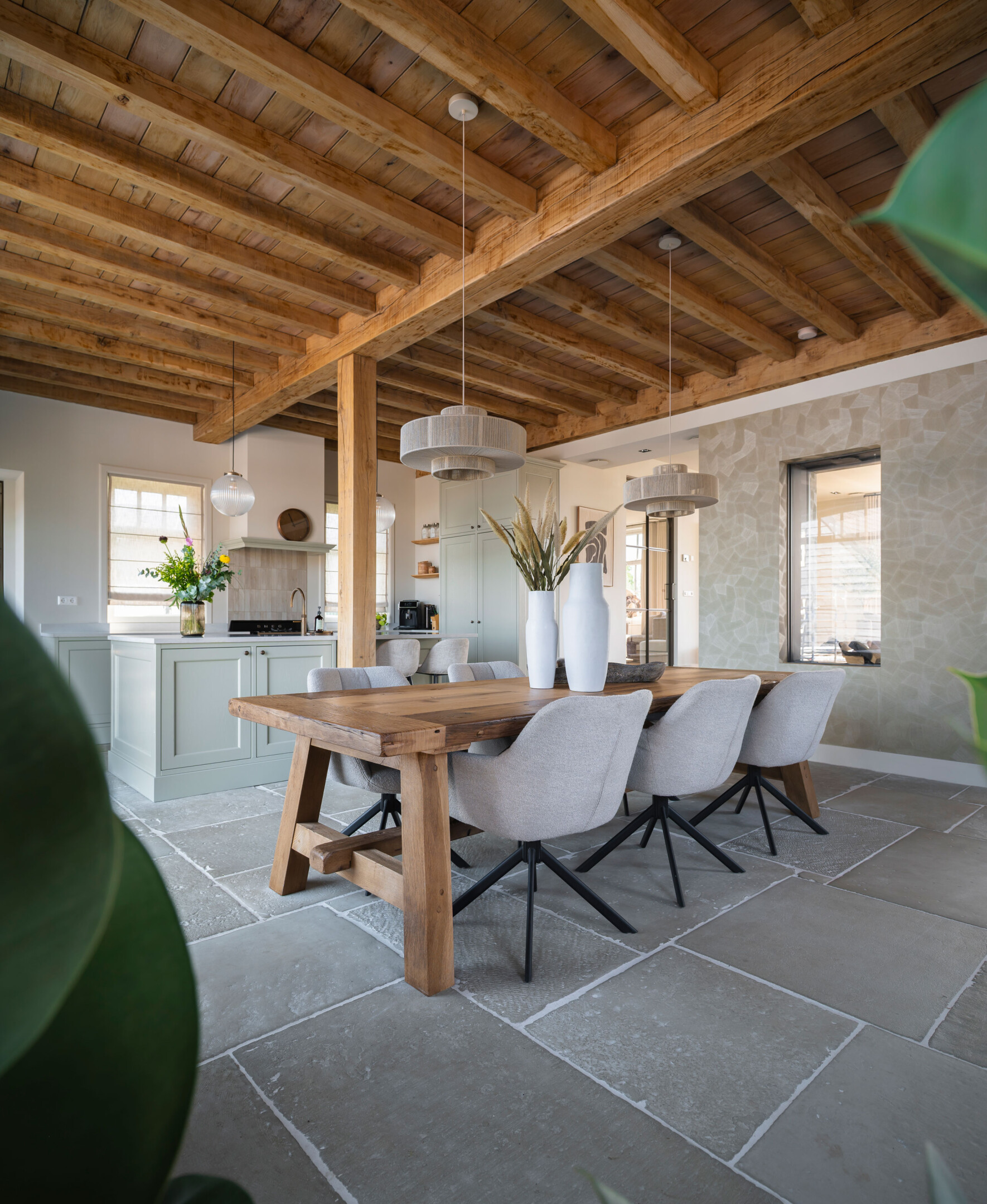 Wanneer de familie Benjamins hun nieuwe woning in Stolwijk laat bouwen, staat de stijl al vast: een landelijke boerderijwoning met warme tinten en natuurlijke materialen. Toch mag het interieur ook een frisse, eigentijdse twist krijgen. “Oorspronkelijk kwamen we alleen voor een vloer en een bank,” vertellen ze. “Maar na een rondje door de showroom werden we steeds enthousiaster. Voor we het wisten zaten we met Berthun en Julianne aan tafel voor een compleet advies.”